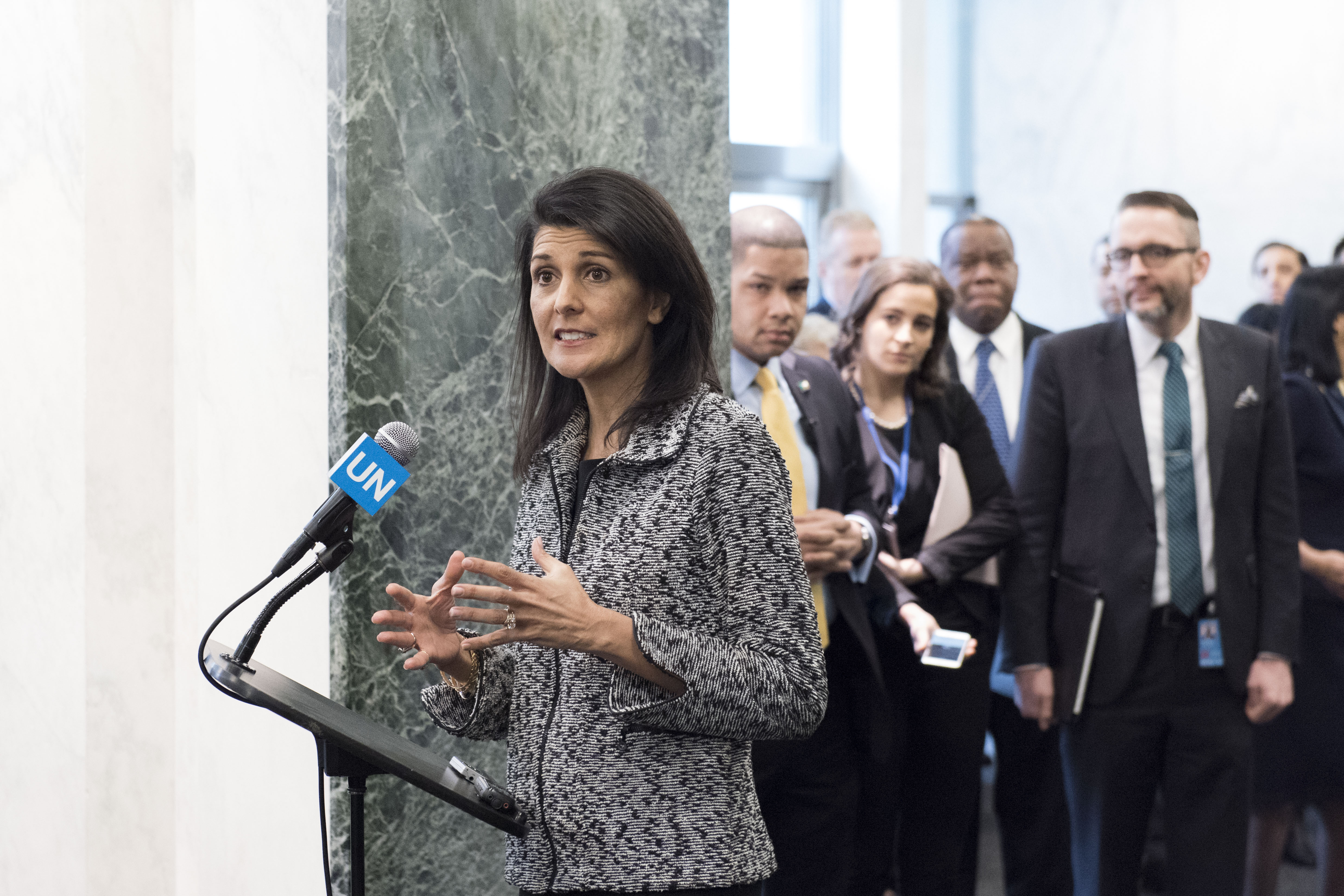 Diplomaattilähteen mukaan Haley suhtautuu YK:n 16 rauhanturvaoperaation arvoon ”suhteellisen skeptisesti”. Yhdysvallat on tällä hetkellä suurin yksittäinen maksaja rauhanturvaoperaatioiden 7,9 miljardin dollarin budjetista. Haleyn tavoitteena on laskea Yhdysvaltain maksuosuutta 29 prosentista 25 prosenttiin.