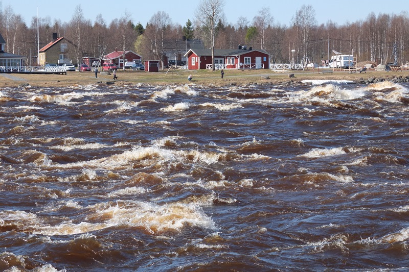 Ensin paikalle saapunut paikallispaikkeriryhmä oli tehnyt jo kynsitulet laavulle Piipusta savu nousikin tuulettomana päivänä suoraan. Porukalla hämmästeltiin pohjoisen Suomen ilmaston muutosta. Ihmeteltiin Suomen suurimman vapaan kosken, Kukkolankosken jäiden sulamista ja luonnonvoimia. Näin isoja tulvavirtaamia ei ole ollut kuullemma useampaan vuosikymmeniin. Tulisteltiin siinä tovi jos toinenkin laavulla. Parit makkaratkin grillitiin tuulensuojaan ja pahimpaan nälkään.